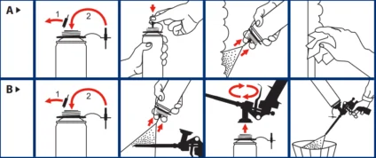 1. Unscrew the polyurethane foam can (keep the valve away from you).